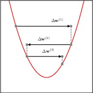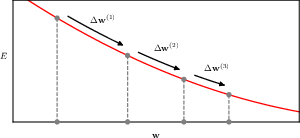 \[ \mathbf{w}^{(\tau)} = \mathbf{w}^{(\tau-1)} + \Delta \mathbf{w}^{(\tau-1)} \]
