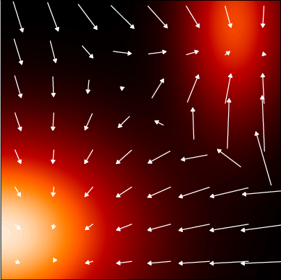 Figure 20.5 shows an example of a probability density in two dimensions, along with the corresponding score function.